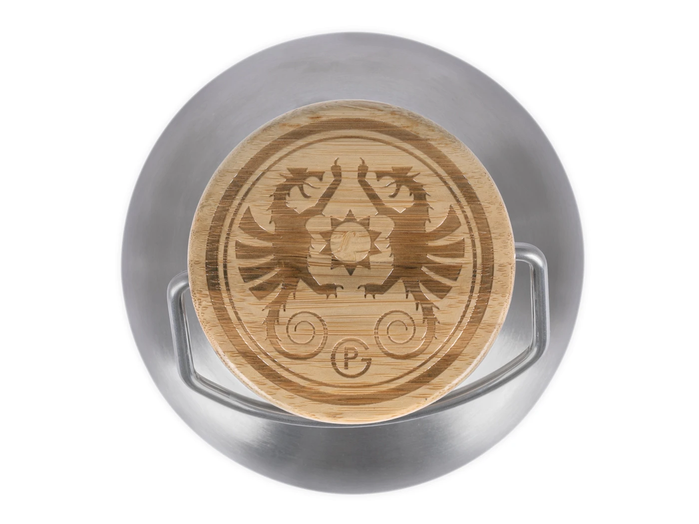 Dubbelwandige thermosfles met bamboe schroefdop en beugel, 1,5 liter. Houdt vloeistoffen warm of koud.